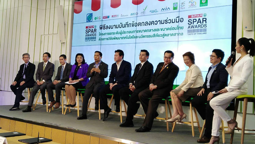 พิธีลงนามบันทึกข้อตกลงความร่วมมือ “โครงการยกระดับผู้ประกอบการขนาดกลางและขนาดย่อม(SME)ไทย ด้วยการวิจัยพัฒนาเทคโนโลยี และนวัตกรรมสีเขียวสู่ตลาดสากล” หรือ Spar Awards : Taste of Thailand  มีขึ้นเมื่อวันที่ 31 สิงหาคม 2561 โดยมี นายสมชัย เตชะวณิช ประธานเจ้าหน้าที่การตลาดและรองกรรมการผู้จัดการใหญ่ กลุ่มธุรกิจการตลาด บริษัท บางจาก คอร์ปอเรชั่น จำกัด (มหาชน) เป็นประธาน มีพันธมิตร ที่ร่วมมือกับบางจาก ได้แก่ สำนักงานส่งเสริมวิสาหกิจขนาดกลางและขนาดย่อม (สสว.) สถาบันอาหาร (NFI) สำนักงานพัฒนาวิทยาศาสตร์และเทคโนโลยีแห่งชาติ (สวทช.) สำนักงานนวัตกรรมแห่งชาติ (องค์การมหาชน) (NIA) สำนักงานคณะกรรมการวิจัยแห่งชาติ (วช.) สำนักงานกองทุนสนับสนุนการวิจัย (สกว.) สภาอุตสาหกรรมแห่งประเทศไทย (ส.อ.ท.)ธนาคารกสิกรไทย จํากัด (มหาชน) และกลุ่มบริษัทบางจากฯ โดยสถาบันนวัตกรรมและบ่มเพาะธุรกิจบางจาก (Bangchak Initiative and Innovation Center – BiiC) และบริษัท บางจาก รีเทล จำกัด (BCR) ผู้ดำเนินธุรกิจกลุ่ม Non-Oil