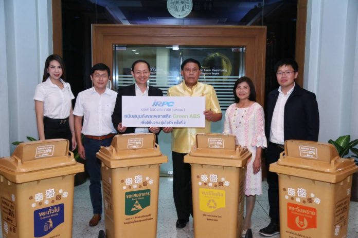IRPC ให้การสนับสนุนจัดทำถังขยะที่ผลิตจากเม็ดพลาสติกรักษ์โลกซึ่งใช้ยางธรรมชาติเป็นส่วนผสม 20% (Green ABS) มีขนาดความจุ 120 ลิตร จำนวน 100 ใบ โดยออกแบบสวยงามสำหรับงานอุ่นไอรักฯ ด้านหน้าของถังจะแสดงประเภทของขยะออกเป็น 4 ชนิด ประกอบด้วย ขยะทั่วไป ขยะที่เป็นเศษอาหาร ขยะรีไซเคิล และขยะอันตราย เพื่อให้ง่ายต่อการคัดแยกขยะ เป็นการส่งเสริมและสนับสนุนการรักษาสิ่งแวดล้อมให้กรุงเทพมหานครเป็นพื้นที่ที่สะอาดและสวยงาม